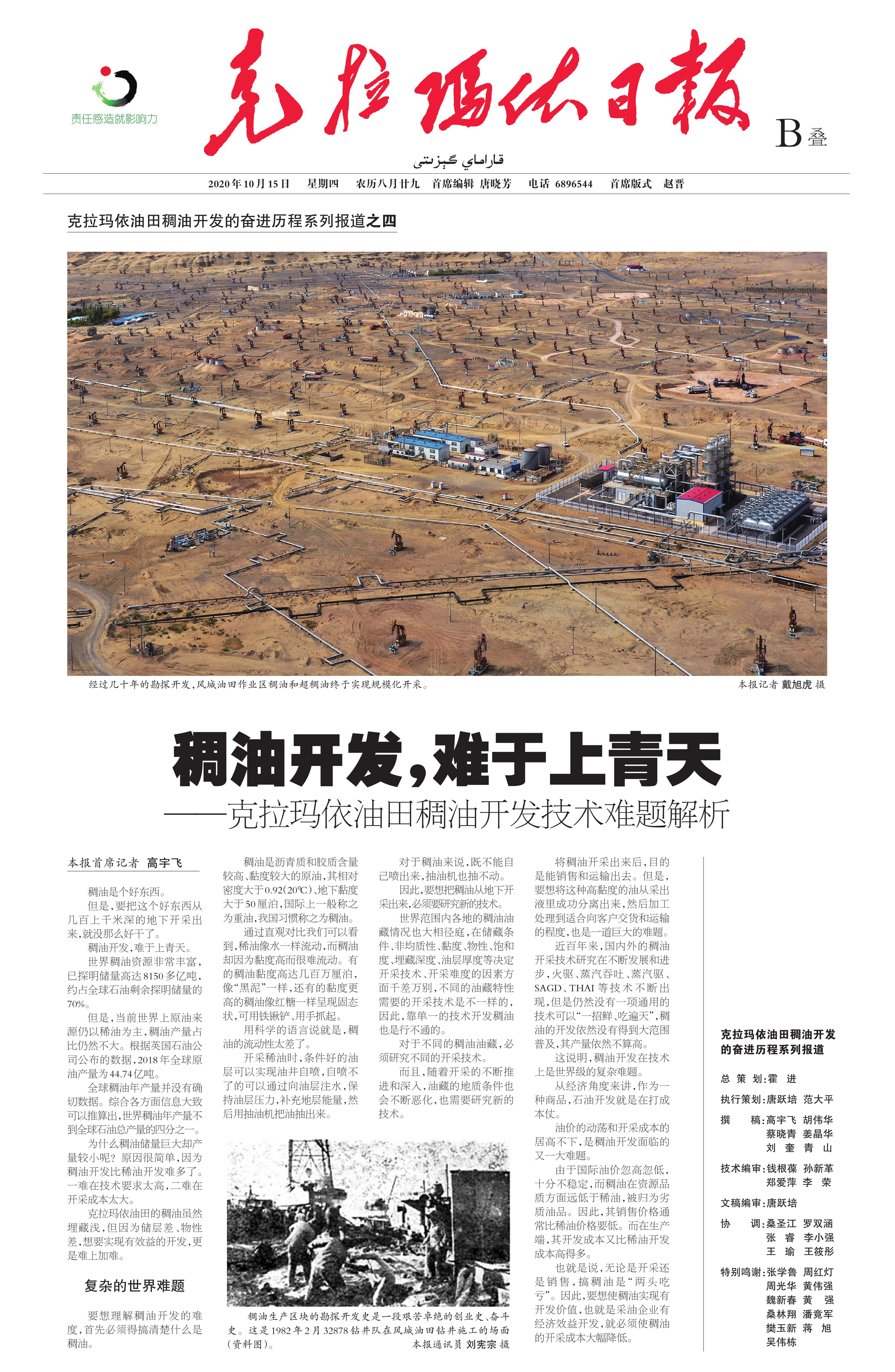 ????明日請關注克拉瑪依油田稠油開發(fā)的奮進歷程系列報道之五:《馴化蒸汽突出重圍——克拉瑪依油田稠油油藏注蒸汽開發(fā)技術攻關紀實》