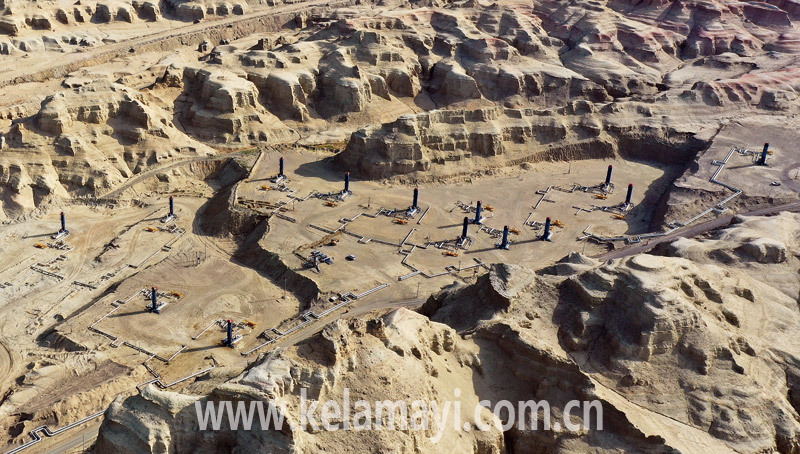 ????在烏爾禾荒涼的地貌下面,蘊(yùn)藏著大量的稠油。這里的稠油黏度極高,所以叫超稠油。在這里開發(fā)稠油的油田,就是歸于“克拉瑪依油田”這個廣義概念下的風(fēng)城油田。