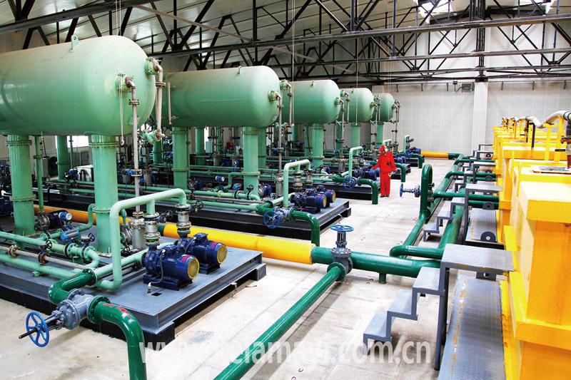 2012年5月15日,風(fēng)城油田作業(yè)區(qū)員工正在注汽鍋爐水處理間巡檢。(風(fēng)城作業(yè)區(qū)供圖)