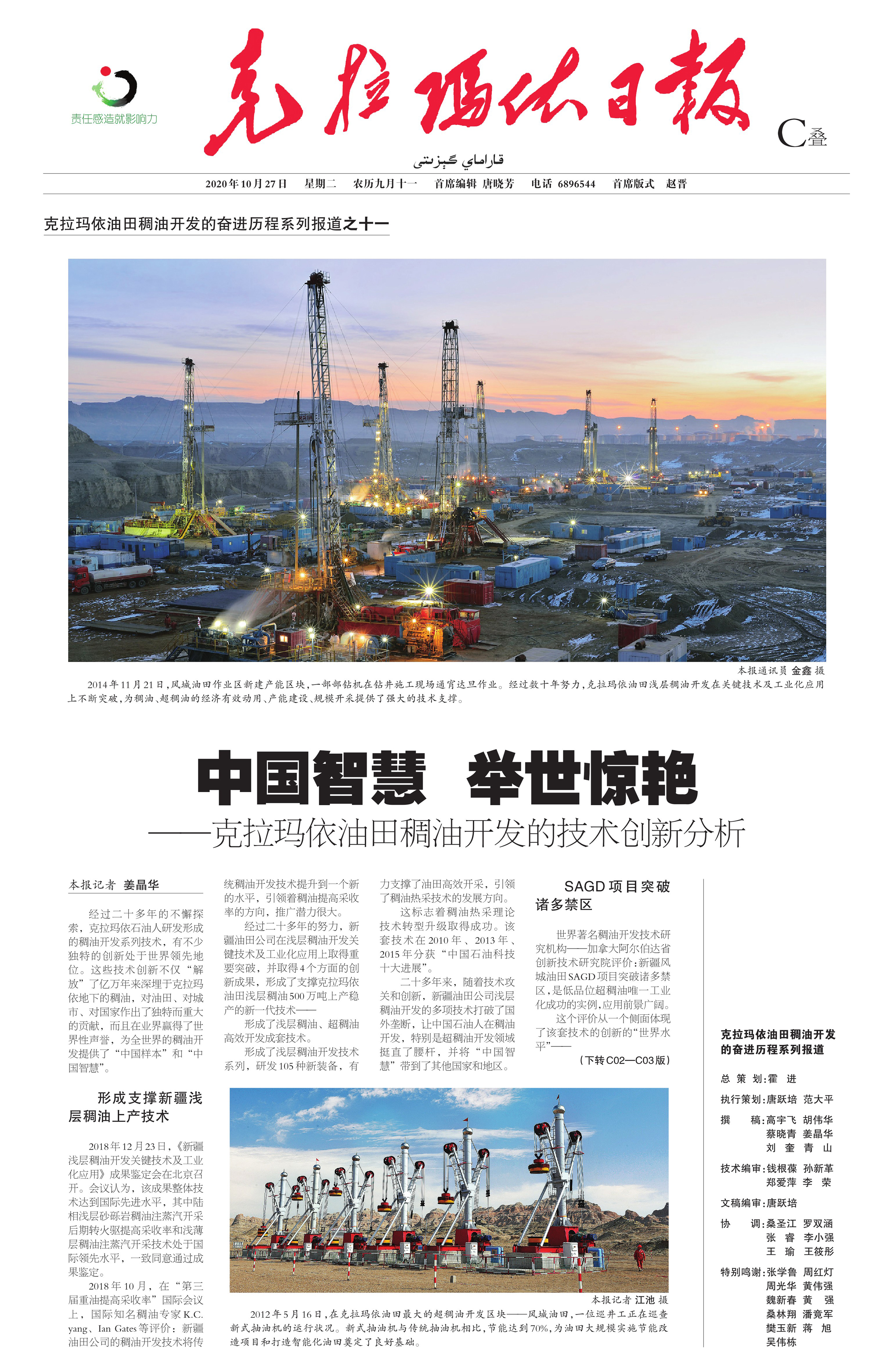 ????世界著名稠油開發(fā)技術(shù)研究機構(gòu)——加拿大阿爾伯達省創(chuàng)新技術(shù)研究院評價:新疆風(fēng)城油田SAGD項目突破諸多禁區(qū),是低品位超稠油唯一工業(yè)化成功的實例,應(yīng)用前景廣闊。