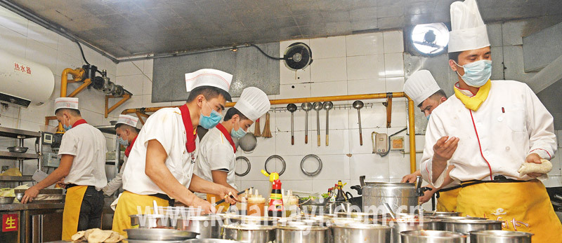 城西古北社區(qū)轄區(qū)內(nèi)的一家餐館在社區(qū)、工作隊(duì)的幫助下,解決了新員工招聘、員工宿舍安排等難題。本報(bào)首席記者 閔勇 攝