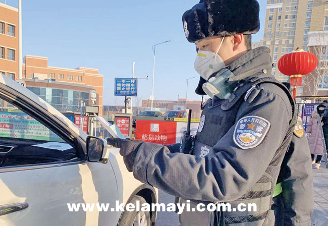 ????面對突如其來的疫情,克拉瑪依區(qū)公安分局昆侖路派出所民警王洪偉奮勇爭先,為廣大居民群眾的安全保駕護(hù)航。????得到妻子鼎力支持