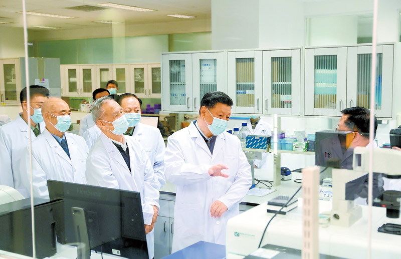 ????新華社3月2日電中共中央總書記、國家主席、中央軍委主席習(xí)近平2日在北京考察新冠肺炎防控科研攻關(guān)工作,代表黨中央向奮斗在疫情防控科研攻關(guān)一線的廣大科技工作者表示衷心的感謝和誠摯的問候。他強調(diào),人類同疾病較量最有力的武器就是科學(xué)技術(shù),人類戰(zhàn)勝大災(zāi)大疫離不開科學(xué)發(fā)展和技術(shù)創(chuàng)新。要把新冠肺炎防控科研攻關(guān)作為一項重大而緊迫任務(wù),綜合多學(xué)科力量,統(tǒng)一領(lǐng)導(dǎo)、協(xié)同推進(jìn),在堅持科學(xué)性、確保安全性的基礎(chǔ)上加快研發(fā)進(jìn)度,盡快攻克疫情防控的重點難點問題,為打贏疫情防控人民戰(zhàn)爭、總體戰(zhàn)、阻擊戰(zhàn)提供強大科技支撐。????2日下午,習(xí)近平首先來到軍事醫(yī)學(xué)研究院,聽取研究院關(guān)于新冠肺炎疫情防控科研攻關(guān)的總體情況匯報,結(jié)合展板和實物了解疫苗和抗體研制、藥物篩選、病毒致病機理研究、快速檢測試劑研究和應(yīng)用等進(jìn)展情況。在儀器測試樓,習(xí)近平察看了重大疫情應(yīng)急防控藥物研究室,向堅守崗位、奮力攻關(guān)的一線專家和科研人員表示親切慰問。他強調(diào),提高治愈率、降低病亡率,最終戰(zhàn)勝疫情,關(guān)鍵要靠科技。習(xí)近平指出,新冠肺炎疫情發(fā)生以來,軍事醫(yī)學(xué)研究院堅決貫徹黨中央和中央軍委決策指示,聞令即動、爭分奪秒,集中力量展開應(yīng)急科研攻關(guān),取得了階段性成果,充分展現(xiàn)了人民軍隊忠于黨、忠于人民的政治本色和敢打硬仗、善打勝仗的優(yōu)良作風(fēng)。習(xí)近平希望他們再接再厲,充分發(fā)揮突擊隊和主力軍作用,盡快研制出安全有效的疫苗、藥物、檢測試劑,全力滿足抗擊疫情需要。要堅持在疫情可溯、可診、可防、可治、可控方面合力攻關(guān),通過打這場硬仗,掌握更多具有自主知識產(chǎn)權(quán)的核心科技,拿出更多硬核產(chǎn)品,為維護人民生命安全和身體健康、維護國家戰(zhàn)略安全作出更大貢獻(xiàn)。