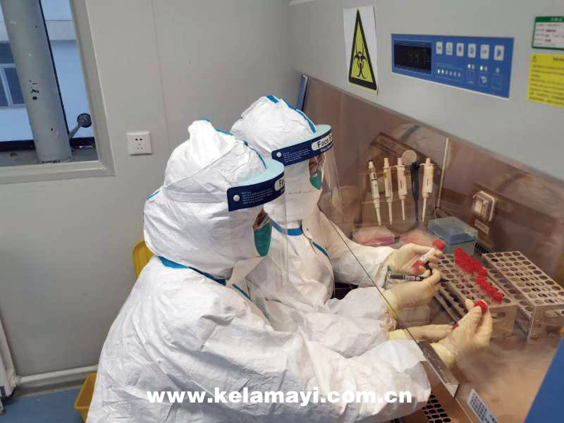 ????市疾控中心檢驗科的主管技師劉佳去年10月被公派到江蘇省疾控中心進(jìn)行為期一年的全脫產(chǎn)進(jìn)修培訓(xùn),今年1月初回克拉瑪依探親??吹揭咔榉揽匦蝿萑遮厙?yán)峻,劉佳選擇放棄陪伴兩個孩子的機(jī)會,主動請纓回到單位工作。她每天“全副武裝”從事檢測工作,雖然穿上兩三個小時就感到呼吸困難,但她堅持工作,每班在實驗室工作時間少則5個小時,長則七八個小時。一個多月以來,她沒有回過家。