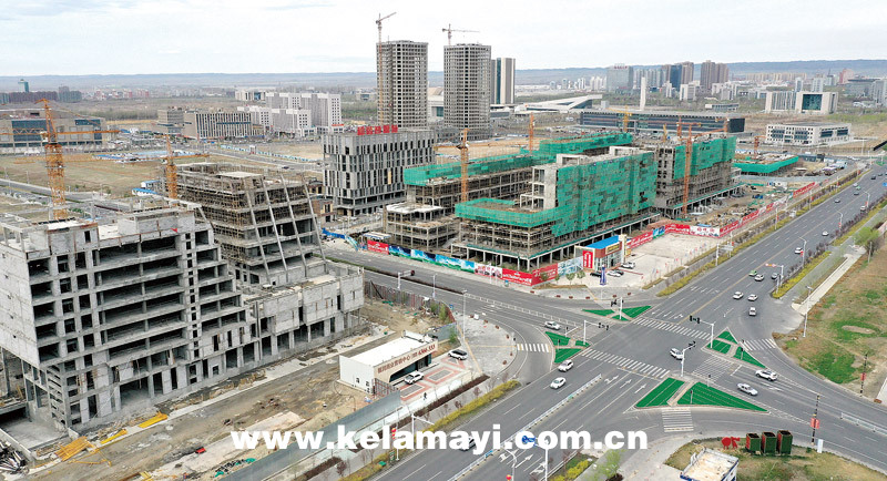 克拉瑪依區(qū)城南旅游商務(wù)區(qū)內(nèi)一片忙碌景象。 記者 李浩然 攝