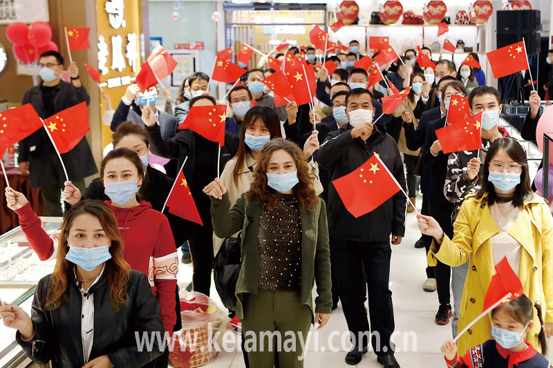10月1日,克拉瑪依區(qū)油北社區(qū)訪惠聚工作隊(duì)、社區(qū)居委會(huì)和聯(lián)點(diǎn)單位,在匯嘉商場(chǎng)內(nèi)共同舉辦了“同唱一首歌,共抒愛(ài)國(guó)情”公益快閃活動(dòng)。本報(bào)記者 努爾買(mǎi)買(mǎi)提·艾山 攝