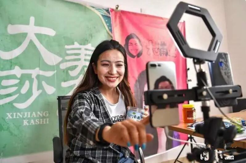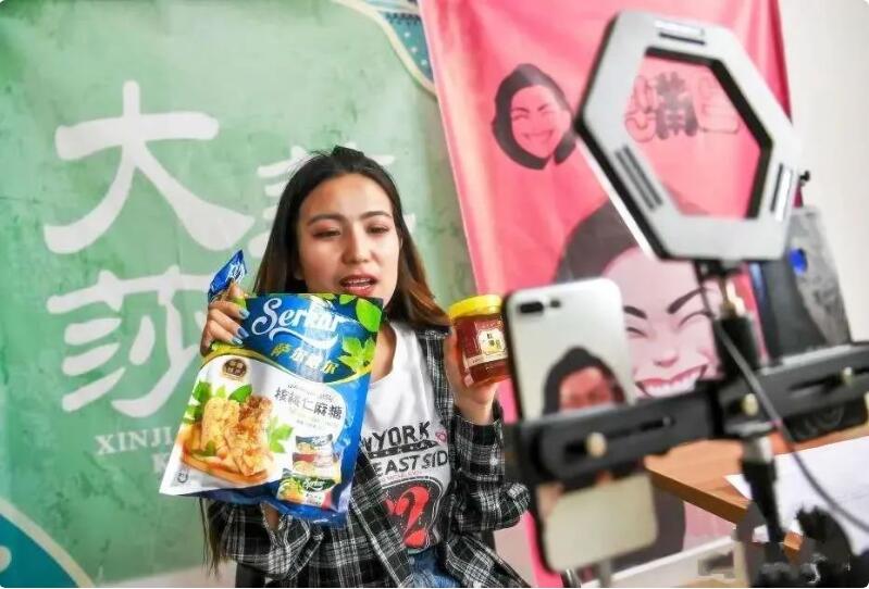 近日,在喀什地區(qū)莎車縣電子商務(wù)公共服務(wù)中心,有著13萬多訂閱用戶的本地“網(wǎng)紅美女”阿斯達(dá)木 · 克依木通過視頻直播帶貨家鄉(xiāng)特產(chǎn),吸引了大量網(wǎng)友點(diǎn)贊和購買。