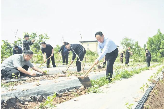 ????山東省援疆指揮部全體援疆干部人才到疏勒縣巴仁鄉(xiāng)尤喀克巴仁村開展“民族團結(jié)一家親”活動。圖為援疆干部人才深入田間地頭,幫助村民清理雜草。楊桀攝