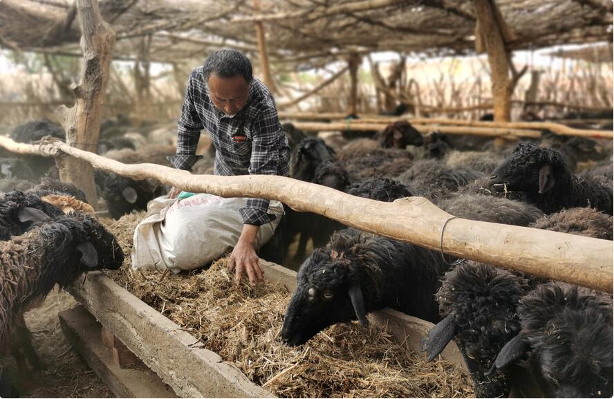 艾尼瓦爾給羊添加草料