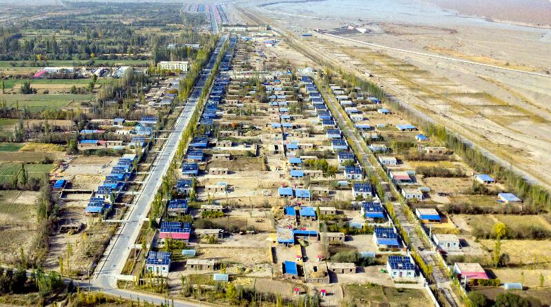 6月22日清晨,當?shù)谝豢|陽光灑在且末縣庫拉木勒克鄉(xiāng)巴什克其克村牧民定居點時,村民麥麥提·艾力木就已經(jīng)忙碌起來:清洗擦拭屋頂上的“藍板板”——分布式光伏發(fā)電板,給羊圈的20余只羊添水喂草……如今,和麥麥提一樣搬遷下山在定居點開啟新生活的牧民們,靠著光伏發(fā)電分紅、發(fā)展畜牧業(yè)、開辦牧家樂等,逐步擺脫貧困走上了致富路。