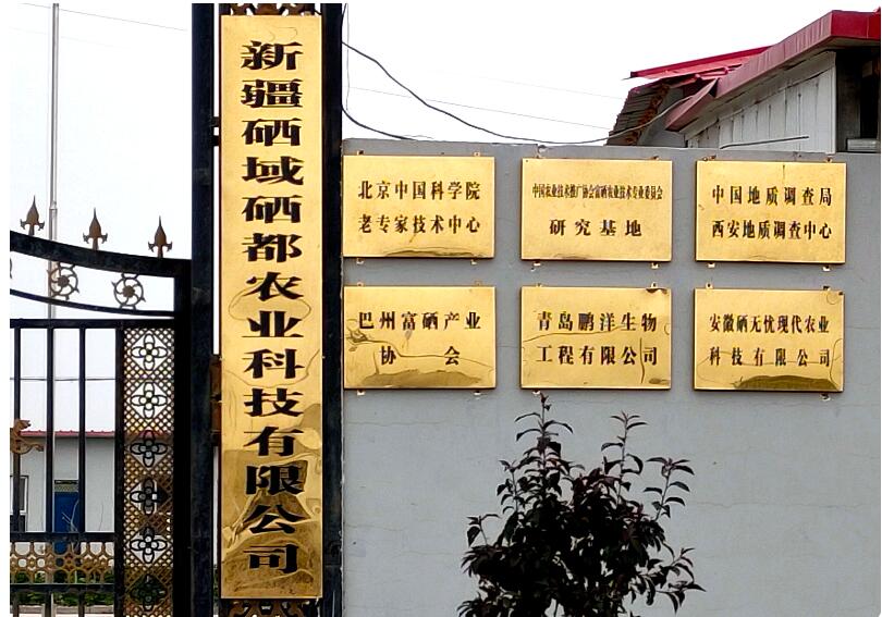 新疆硒域硒都農(nóng)業(yè)科技有限公司門口,掛著被曹志剛“眾籌”的多家科研所授的銘牌。