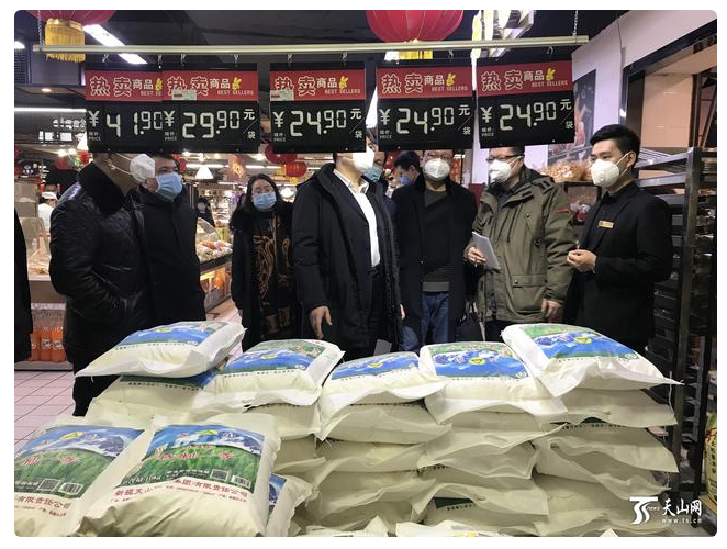 天山網(wǎng)訊(記者于江艷攝影報道)按照自治區(qū)黨委的統(tǒng)一部署,自治區(qū)市場監(jiān)管局、自治區(qū)商務廳、自治區(qū)藥監(jiān)局共同組成三個督查組,分成9個小組,每日對烏魯木齊市米面油肉蛋奶菜等老百姓生活必需品,以及口罩、溫度計、消毒液、抗病毒藥品等疫情防控物資,進行調(diào)查統(tǒng)計,隨機調(diào)查超市、農(nóng)貿(mào)市場、藥店等經(jīng)營場所,檢查這些生活及疫情防控物資供應情況和價格。