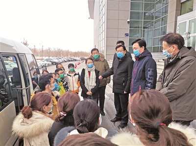 2月4日,由我市4家醫(yī)院20名護(hù)理人員組成的首支援助湖北醫(yī)療隊(duì)正式出征。(市委宣傳部提供)