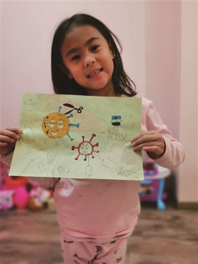 豌豆作畫為抗疫加油。圖片由肖遙提供