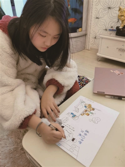 胡睿軒“宅”在家中創(chuàng)作有關疫情防控的畫作。圖片由本人提供