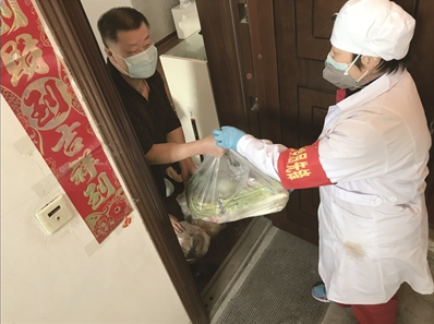 該社區(qū)是我市建成較早的社區(qū),居民樓沒有電梯,為居民采購的所有物品都需要人力爬樓梯送到居民家中。社區(qū)工作人員和黨員先鋒隊隊員為最大限度地滿足居民需求,每天從早晨9時開始工作,到次日凌晨才能休息。在室外溫度為零下十幾攝氏度的寒冷天氣下,每次為居民送菜送藥扔垃圾,他們的衣服都會被汗水浸透。
