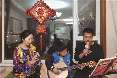 2月8日,前進(jìn)小區(qū),家人一起演奏。李紅超 攝