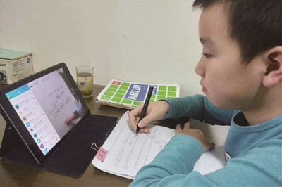 2月7日,鼎泰社區(qū),給學(xué)生上直播課。阮鳳婷 攝
