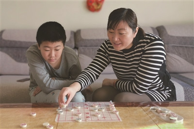 2月9日,碧水云天社區(qū),母子下棋。張思遠(yuǎn) 攝