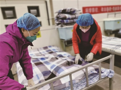 “我們幾個2月9日10時進倉開展基礎(chǔ)性工作,當天下午18時接到收治病人的緊急通知后,一直忙到2月10日凌晨2時交班,因為要排隊換防護服,回到宿舍躺下已經(jīng)10時了?!贝魑恼f,C廳2月9日18時開始陸續(xù)接收病人,直到22時病人才基本入住完畢。這期間,她和其他4名隊員主要負責C廳48位病人的基本信息登記、生命體征監(jiān)測、生活照料等工作。