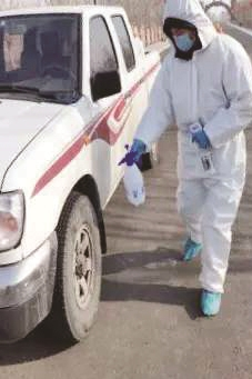 烏爾禾區(qū)各村村口值守人員為車輛消毒。烏爾禾區(qū)委宣傳部提供