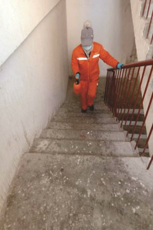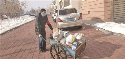 獨山子區(qū)新北區(qū)街道第十六社區(qū)工作人員在清運居民垃圾。新北區(qū)街道提供