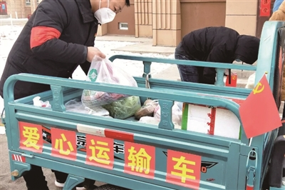 烏爾禾柳樹街街道愛心運輸車為居民送貨物。烏爾禾區(qū)委宣傳部提供