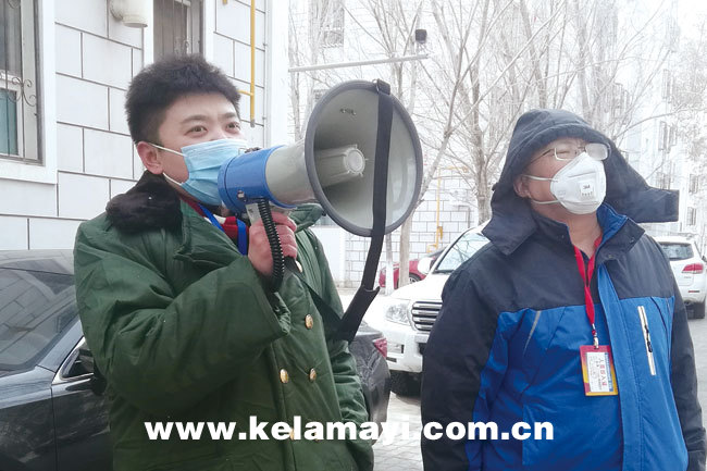 ????“我和我的祖國(guó),一刻也不能分割……”元宵節(jié)那天上午11時(shí)許,一位穿著綠色軍大衣拿著大喇叭的小伙子,站在克拉瑪依區(qū)迎賓街道澤福社區(qū)B區(qū)居民樓下,大聲地給居民唱歌,被人錄下來(lái)發(fā)到了微信群和朋友圈里,立即“紅”遍了克拉瑪依。