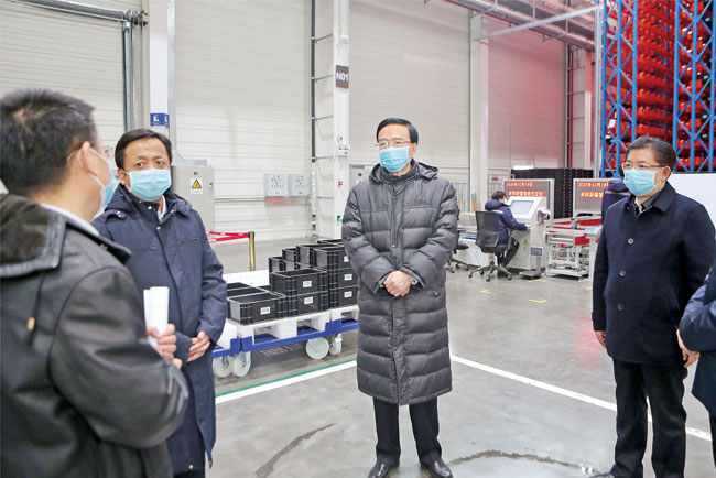 2月18日,自治區(qū)黨委書記、自治區(qū)新冠肺炎疫情防控工作領(lǐng)導(dǎo)小組組長陳全國在烏魯木齊市調(diào)研企業(yè)復(fù)工復(fù)產(chǎn)工作。這是在烏魯木齊經(jīng)濟(jì)技術(shù)開發(fā)區(qū)卓郎新疆智能機(jī)械有限公司,陳全國主動(dòng)接受體溫檢測后,走進(jìn)企業(yè)生產(chǎn)車間,了解疫情防控、員工到崗、生產(chǎn)經(jīng)營等情況。(據(jù)《新疆日報(bào)》)