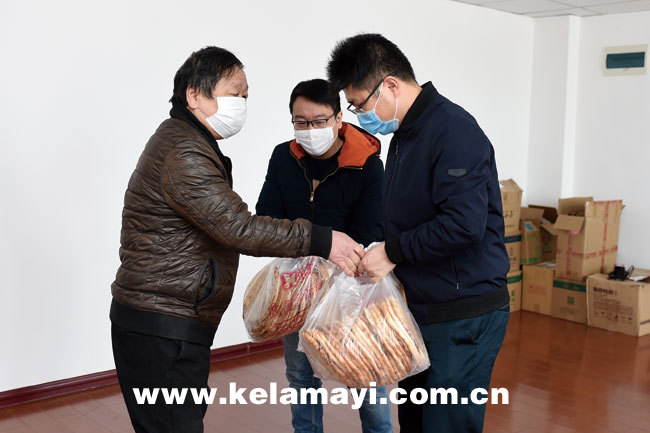 ????2月21日中午,克拉瑪依區(qū)克拉艾泥特色紫砂馕店老板朱文革(左一)帶著260個(gè)紫砂馕,先后慰問了堅(jiān)守在抗疫一線的克拉瑪依區(qū)新冠肺炎疫情防控指揮部、克拉瑪依日?qǐng)?bào)社和克拉瑪依廣播電視臺(tái)。據(jù)朱文革介紹,紫砂馕是由克拉瑪依本地紫砂制作的馕坑烤制而成,具有干凈衛(wèi)生、營養(yǎng)豐富的特點(diǎn)。疫情防控期間,朱文革已為街道、公安、醫(yī)院等堅(jiān)守在抗疫一線的工作人員送去了三千余個(gè)紫砂馕。