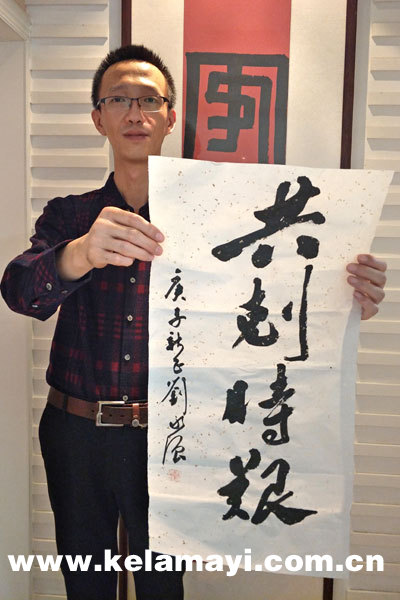 16日,城南社區(qū), 市民王新勇展示書法。 作者供圖