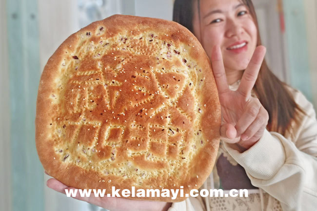 2月14日,森香水岸社區(qū),第三中學(xué)教師在家烤制帶有“武漢加油”字樣的新疆特色馕,為全國抗疫鼓勁助威。本報通訊員 高楊 攝