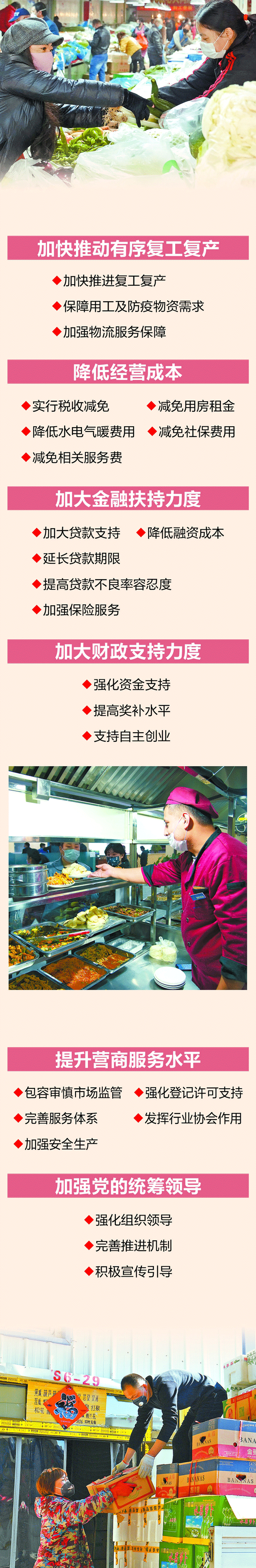 (一)加快推進(jìn)復(fù)工復(fù)產(chǎn)。在自治區(qū)新冠肺炎疫情防控工作指揮部統(tǒng)一領(lǐng)導(dǎo)下,各地各部門要認(rèn)真落實(shí)市場(chǎng)監(jiān)管總局等六部委出臺(tái)的《關(guān)于應(yīng)對(duì)疫情影響加大對(duì)個(gè)體工商戶扶持力度的指導(dǎo)意見》及《自治區(qū)復(fù)工復(fù)產(chǎn)企業(yè)新冠肺炎疫情防控措施指南(試行)》等各項(xiàng)要求,在做好疫情防控工作的前提下,快速有序推動(dòng)個(gè)體工商戶復(fù)工復(fù)產(chǎn)。各地州市要結(jié)合疫情防控實(shí)際,盡快組織居民服務(wù)類、交通運(yùn)輸類、實(shí)體批發(fā)零售類、餐飲類等涉及群眾基本生活保障行業(yè)的個(gè)體工商戶復(fù)工復(fù)產(chǎn)。符合復(fù)工復(fù)產(chǎn)要求的個(gè)體工商戶,無需批準(zhǔn)即可依法依規(guī)開展經(jīng)營(yíng)活動(dòng)。