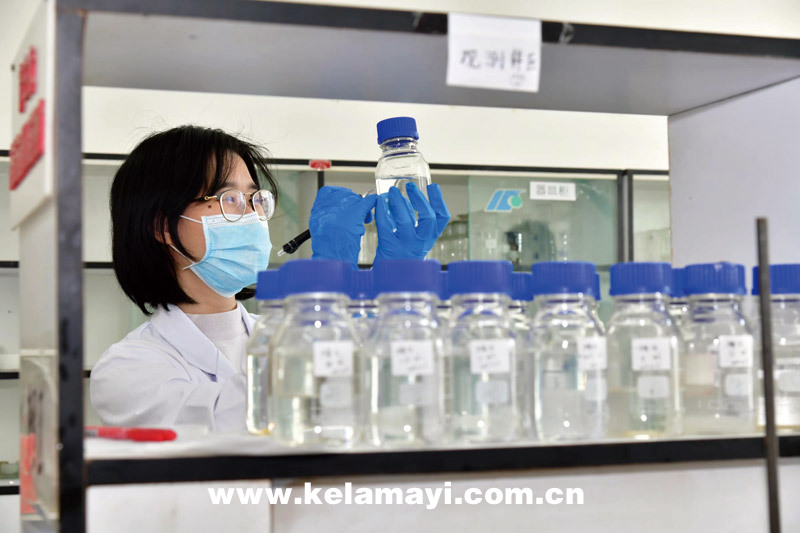 復(fù)工后,科研人員正在進行壓裂液配制實驗。