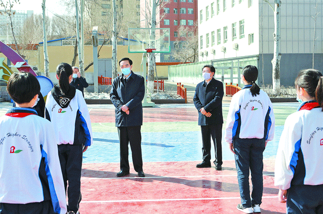 烏魯木齊3月23日訊 全媒體記者姚彤、王興瑞報(bào)道:3月23日是全區(qū)中小學(xué)和中職學(xué)校開(kāi)學(xué)復(fù)課第一天,5000多所學(xué)校的400多萬(wàn)名學(xué)生重返校園。上午,自治區(qū)黨委書(shū)記陳全國(guó)來(lái)到烏魯木齊市調(diào)研檢查中小學(xué)和中職學(xué)校開(kāi)學(xué)復(fù)課和校園疫情防控工作。他強(qiáng)調(diào),要深入貫徹落實(shí)習(xí)近平總書(shū)記關(guān)于統(tǒng)籌推進(jìn)疫情防控和經(jīng)濟(jì)社會(huì)發(fā)展工作的重要講話重要指示精神,從嚴(yán)從細(xì)從實(shí)做好學(xué)校疫情防控和教育教學(xué)工作,確保教育教學(xué)正常、師生身體健康。