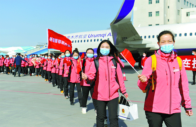 59天前,湖北疫情防控鏖戰(zhàn)正酣,由新疆醫(yī)科大學(xué)6所附屬醫(yī)院人員組成的新疆首批支援湖北醫(yī)療隊(duì)領(lǐng)命出征。