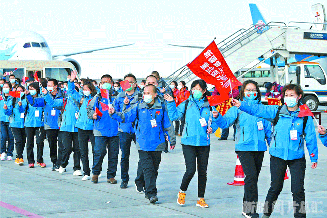 “武漢保重!”在天河機(jī)場(chǎng),新疆支援湖北醫(yī)療隊(duì)把最深情的祝福留在這座英雄的城市。