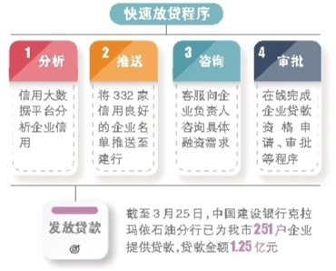 ????抗疫期間,建行推出了“云義貸”業(yè)務(wù)產(chǎn)品,精準(zhǔn)支持小微企業(yè)客戶線上線下融資,助力企業(yè)復(fù)工復(fù)產(chǎn)。對此,市發(fā)展改革委在疫情期間堅(jiān)持信用服務(wù)不斷檔,積極與建行聯(lián)系對接,將信用大數(shù)據(jù)平臺分析得出的332家信用評價(jià)結(jié)果良好的企業(yè)推送至建行,為這些企業(yè)復(fù)產(chǎn)復(fù)工爭取高效便捷的信用貸款。截至3月25日,中國建設(shè)銀行克拉瑪依石油分行已為我市251戶企業(yè)提供貸款,貸款金額1.25億元。
