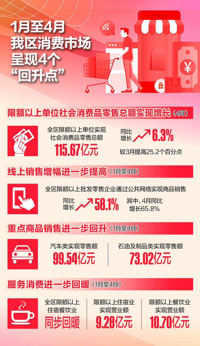 比如積極組織促銷活動(dòng),通過依托重點(diǎn)地州、商圈、大型商貿(mào)流通企業(yè)、商協(xié)會(huì)在全區(qū)打造餐飲、家電、商超等系列多形式、多種類主題的促消費(fèi)活動(dòng)提振信心。引導(dǎo)各地結(jié)合實(shí)際發(fā)放消費(fèi)券的同時(shí),動(dòng)員中國銀聯(lián)等金融機(jī)構(gòu),蘇寧、海爾、美團(tuán)等重點(diǎn)企業(yè)讓利,激發(fā)消費(fèi)需求,促進(jìn)消費(fèi)潛力釋放。