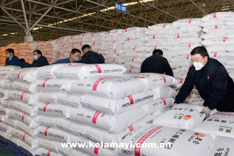 2月24日,獨山子石化公司鐵路專用線站臺,裝載機手正在裝運醫(yī)用口罩原料——聚丙烯S2040,準(zhǔn)備發(fā)往武漢。