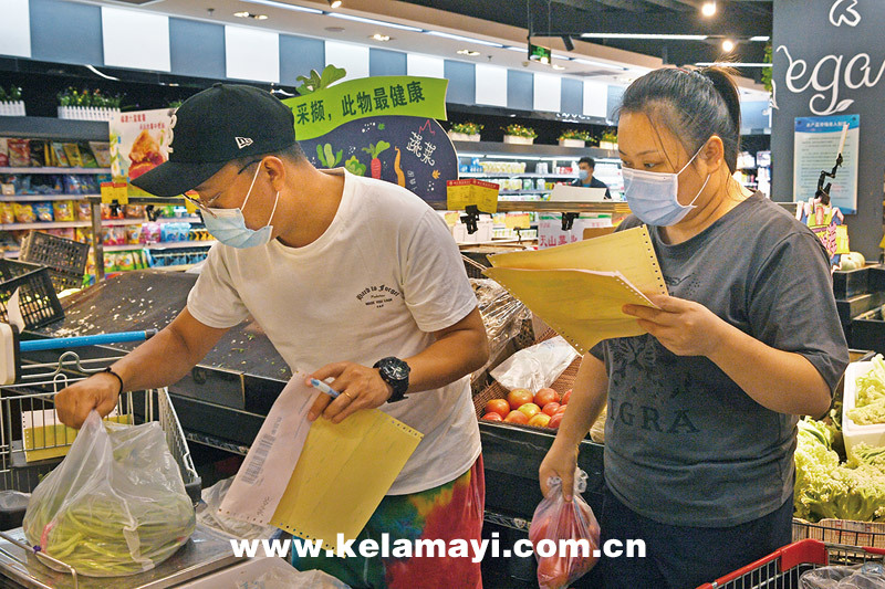 本報(bào)首席記者 閔勇 攝 7月30日, 匯嘉超市營業(yè)員正在為線上下單的市民選配商品。