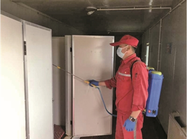 8月9日,他調(diào)試好設(shè)備、配好消毒液、肩背大藍(lán)桶,手持一米多長的霧化“長槍”,身姿矯健、動作熟練地進(jìn)行消毒作業(yè),看上去非常專業(yè)。完成了今天的消毒作業(yè)后,這位消毒員樂呵呵地跟同事開著玩笑說:“當(dāng)配液工這么多年,只配過壓裂液、修井液,配消毒液還是頭一回。這算不算長知識了?”