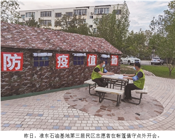 準(zhǔn)東石油基地花溪苑小區(qū)執(zhí)勤點(diǎn)設(shè)在小區(qū)廣場上。帳篷搭建好后,負(fù)責(zé)該小區(qū)的志愿者在這里召開了簡單的碰頭會。該值守點(diǎn)負(fù)責(zé)人吳國軍對夜晚的巡查路線和樓棟進(jìn)行了分工。隨后,執(zhí)勤小組人員按照夜間值守安排,帶上袖標(biāo),對區(qū)域內(nèi)樓棟和巡查路線進(jìn)行了勘察。志愿者們紛紛表示,疫情就是命令,防控就是責(zé)任,在目前嚴(yán)峻的疫情防控形勢下,石油員工就是要沖在一線、嚴(yán)防死守,堅(jiān)決完成好疫情防控任務(wù)。