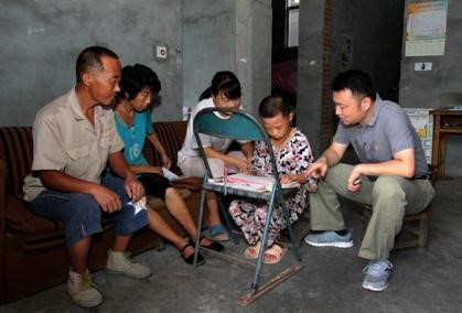 290萬(wàn)扶貧干部中的一員,在皖西北臨泉縣劉橋村(現(xiàn)已改名為劉橋社區(qū))掛職工作的顏亮亮(右一),正在走訪村民。(受訪者供圖)