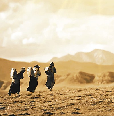 易地搬遷前,尖扎縣山上的村民用水難,只能到山下背水。(尖扎縣委宣傳部供圖)