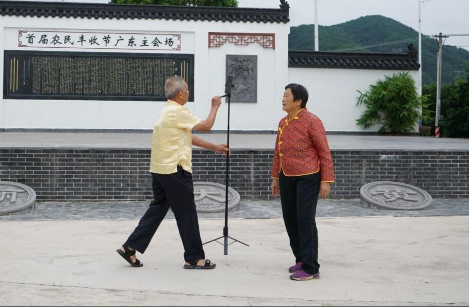 梅州盛產(chǎn)柚子,金秋正迎來(lái)豐收季節(jié)。走進(jìn)大黃村,記者遠(yuǎn)遠(yuǎn)就聽(tīng)到了別具風(fēng)格的客家山歌。79歲的村民廖勝華和71歲的老伴兒李圓妹手持自拍桿,邊走邊唱,正進(jìn)行手機(jī)直播。鏡頭里,柚子樹(shù)上綴滿(mǎn)碩大的果實(shí)。
