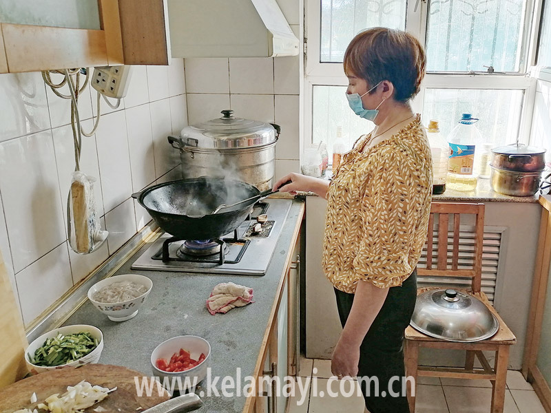 ????在市區(qū)拓湖社區(qū)25棟6號一對80歲的高齡夫婦家里,居民志愿者沈秀瓊正在做午飯。老人的女兒是市中心醫(yī)院的一名醫(yī)護(hù)人員,受疫情影響,已駐扎在單位。拓湖社區(qū)工作隊聯(lián)系25棟的志愿者何小清與沈秀瓊,兩人了解情況后毫不猶豫地答應(yīng)照顧兩名老人的日常生活。她們每日去老人家中打掃衛(wèi)生、做飯、洗衣服,給老人洗澡。