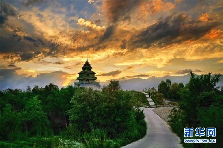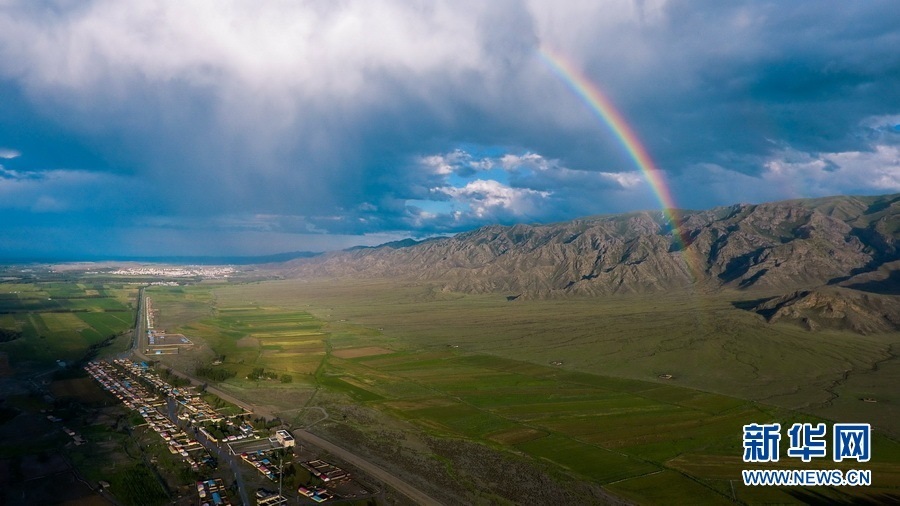 剛下過雨的溫泉縣,天空中掛著一道美麗的彩虹。新華網(wǎng) 杲均豐 攝