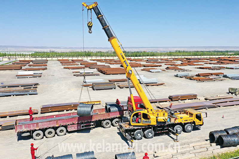物資供應(yīng)總公司新倉(cāng)儲(chǔ)園里一派繁忙。 圖片由新疆油田公司提供