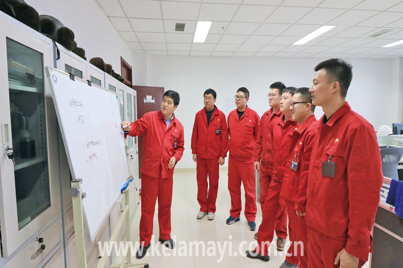新疆油田公司員工正在交流降本增效經(jīng)驗(yàn)。 圖片由新疆油田公司提供